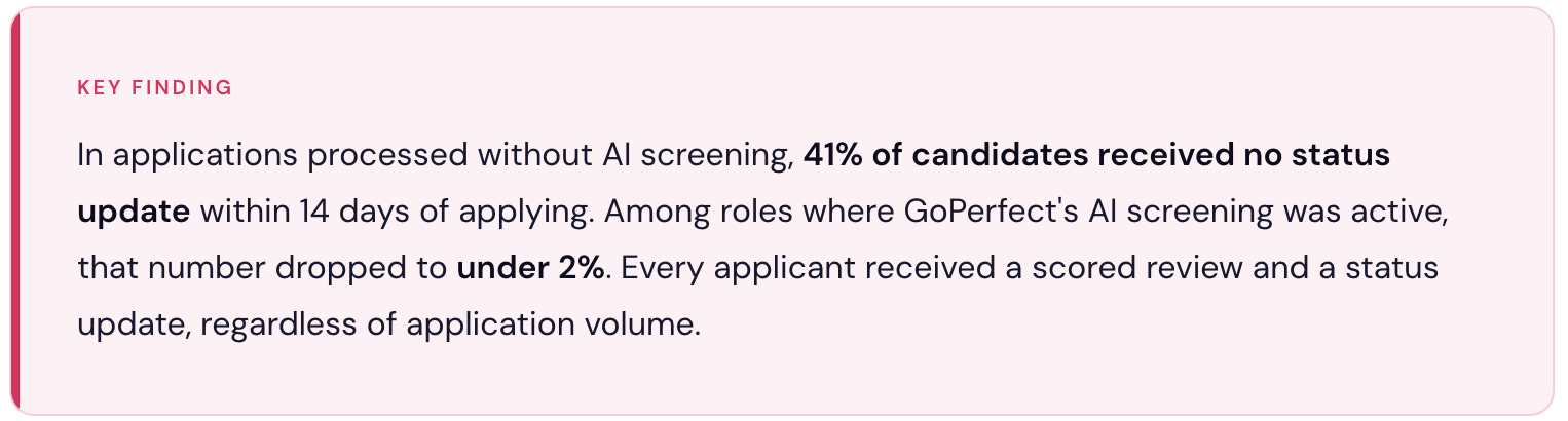 This is part of GoPerfect Labs — where we publish findings from our data team. We analyze candidate and application data across our platform, then share what we find so recruiting teams can stop losing great people to invisible bias.